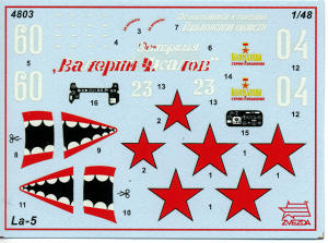 Instructions are very nicely drawn with clear illustrations. Color references are generic and Model Master, but if you are doing a Soviet aircraft, I'll have to recommend ColourCoats line of VVS shades. Markings are provided for three aircraft, all in Dark Green/Black over Light Blue. The first option is the box art plane of the 3rd IAK in May 1943. Second is white 23 of Lt Ptoka of 240 IAP in August 1942. The final option is white 04 of VM Dmitriev with 4 IAP in the summer of 1943. This one has a shark-mouth along with a white spinner and rudder. All aircraft have unpainted metal exhaust areas and panel attachment straps. The decal sheet is very nicely printed and should work just fine.