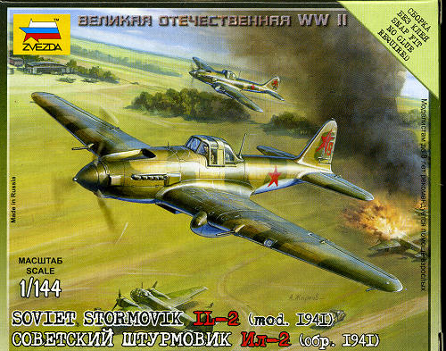 In this case, we have a 1/144 IL-2 that is basically a snap kit, consisting of a dozen parts and a stand. The general outline of the aircraft is fairly good, so that those who want it as a display model can put the additional effort into the build and come up with a fairly nice representation.