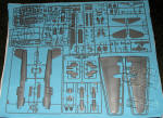 The molding of this kit is superb, reminding one very much of current Hasegawa kits with the crisp, engraved panel lines and the use of decals for instrument panels! The large and sturdy cardboard box opens like those much maligned Pro-Moldeler boxes when that line first appeared. However, these are quite sturdy and should do well to hold the bits one is working on. Many of the sprues are packed one to a polybag, all of which are not sealed. A few of the smaller ones are packed together as are the wing sprues.
