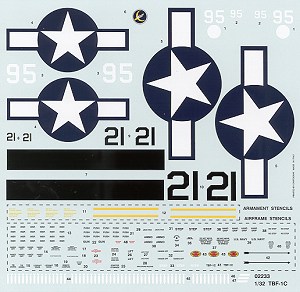 Markings are for two aircraft, both of them rather blah. One in Atlantic scheme of Dark Gull Grey over white for a VC-42 plane from the USS Bogue, and the other for a tri-color scheme aboard the USS Hornet with VT-2; both from 1944.The decal sheet is well printed and looks like it is quite usable. Only time will tell if that is true. I'm sure that there will be aftermarket sheets for this one coming out in the near future. I should mention that this kit only builds a -1C and not the later -3 version so your options may be somewhat limited in that respect. I should also mention that in my copy, there are no paint number references or any color names at all. Fortunately, WWII USN colors are relatively common so you can use the color information in any other kit to apply to this one.
