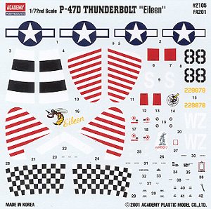 Instructions are quite good and color info is in generic and FS 595 format. Markings are for two aircraft. The box art plane is from the 84 FS/78 FG and is medium green over neutral grey. There is a strong possibility that this is RAF Dark Green over Light Aircraft Grey, but do which you prefer as it isn't OD on the upper surfaces. The other is overall bare metal with a red front cowling and red/white striped tail section from 527 FS/86 FG in Italy during the last part of the war. Decals are very well printed and look great. Some have mentioned having problems with Academy decals and I can echo that. They need to be handled carefully and sometimes won't react well to setting solutions, but they will work.