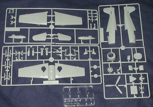 I've probably mentioned before that Academy has a tendency to reverse engineer other folks kits and those one looks somewhat like a Hasegawa kit. One major difference is that this kit has the underwing rockets for the F6F-5 version.