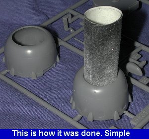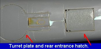 the shell chute. Not a very pretty sight! The turret canopy must be glued to the
