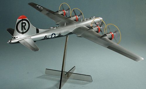OK, now I have a nice stand 1/144 B-29 to go along with the B-1 done a bit back. An interesting comparison of 40 years of technology. Would I build another B-29. Perhaps. First I'd make a concentrated effort to fix that tail. Frankly, this old Crown kit is 30 years old and shows it. I seriously doubt if there will be a replacement any time soon, though it wouldn't be a bad idea for some Chinese manufacturer to give it a try. The kit isn't as easy to build as one initially thinks but it can be slapped together if that is what one wants. I'm sure the kids will like it!