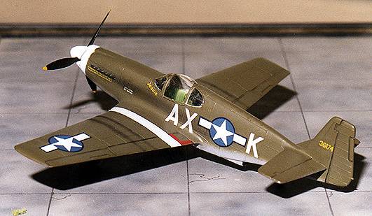 This kit is of the very early version of the P-51, powered by an Allison instead of the Merlin engine. Use of this engine severely limited its high altitude performance so it was not greeted with glad cries by the USAAAF until re-engined with the Merlin. However, it was very fast and capable at low altitudes so the Allison Mustangs spent their careers at low altitude doing ground attack or low level recce work.