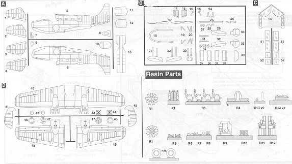 Other than using the bombs and bomb racks, there are really no options. The instructions are getting better all the time. In addition to the 10 construction diagrams, the sheet provides color and decals notes. Colors are matched to FS 595 standards. In the various construction steps, there is color information provided for each part used. There are also placement guides for exactly where to put the bomb racks and a general guide on the float bracing wires.