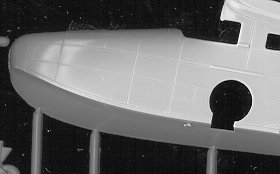 I'm sure that a dedicated modeler would be able to browse some references and come up with something a bit more interesting. These planes also flew in bare metal or painted aluminum with a black antiglare panel on the nose. Perhaps some one will do 'Cutter's Goose' from Tales of the Gold Monkey and provide the pointed spinners to go along with it. That would be great! Of course, there are also lots of civil markings that could be utilized as well. It seems from the additional teardrop side window bits added and the missing spots on the sprues that perhaps other variants are in the plans.