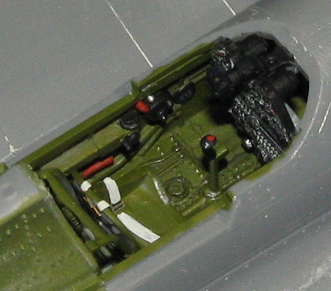 and its hinge. Returning to the cockpit, I glued in the gun sight and the