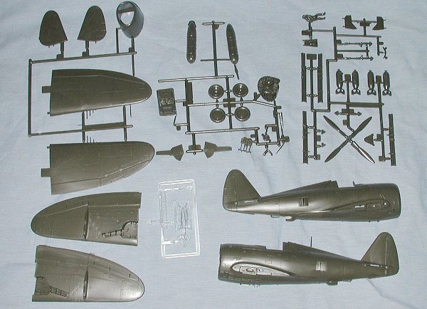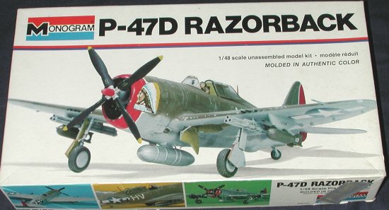 With the huge influx of P-47 stuff reviewed over the last few months, I think I can safely leave the history section out for now. The Monogram P-47D 'razorback' version has been around for quite a while, though not as long as the older bubbletop kit. Though both kits are by Monogram, there are differences between the two. If you'll compare the sprues of this with the earlier kit, you'll see what I mean. However, one thing for sure, it is equally as simple a build, equally good detail level and equally as nice a model when done.