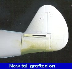 glued the tail from the P-40F kit onto it. Naturally, fit here was horrible. I