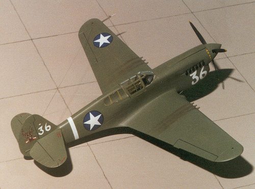 Well, there you have it. A P-40E. It seems as if I took the hard way around to do this, but looking back, it was probably the best use of parts. I really did not want to do a K and wanted a kit a bit more modern than the much older Otaki/ARII and Revell kits in this scale. The end result is a very pleasing P-40E. I put this in the category of what I call '3 foot models'. They look good from about 3 feet away. It is when you get close up that you notice all the little glitches like the huge empty cavity where the radiator exhaust is and the canopy of varying thicknesses!