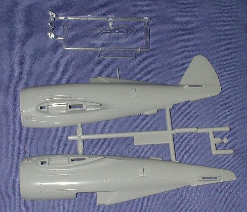 I really didn't want to make this a quickie preview, but there is very little new to say about this particular kit. All that I said about the bubble top version is true of this one as well, including the improved upper wing surface. The only items different in terms of plastic from that kit are the fuselage and canopy. Those parts are shown above. Like its predecessor, the canopy is a single construct and must be cut or replaced to show any cockpit detail.