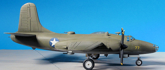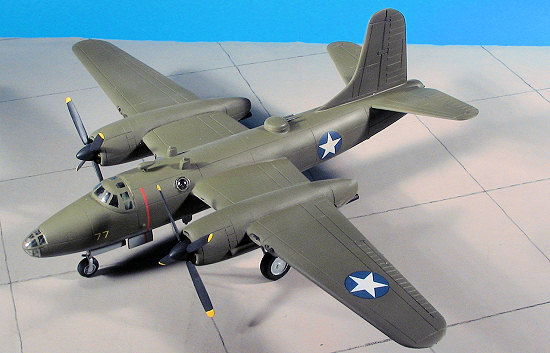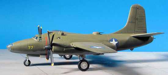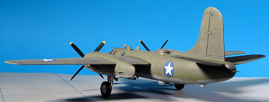 The prototype bomber was originally in unpainted metal with an OD nose anti-glare panel and red, white and blue striped rudder. Later photos show it still unpainted but with the rudder stripes removed, save for those on the trim tab. It was then painted in Olive Drab over Neutral Grey.