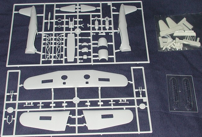 As I mentioned in an earlier review, Azure kits are of aircraft used by the French. This particular kit is very typical of modern short run models. Light grey plastic, fine engraved detailing, good representations of fabric on the aft fuselage and wings, large sprue gates, ejector pin stubs on the large bits (wings, fuselage), a fret of etched metal, a bag of resin and two (!) clear and nicely formed vacuformed canopies. Options with the kit are dive brakes up or down and whether to install the DF loop antenna. A very nice touch is that the frame work inside the fuselage is given as a separate assembly, in fact, you build the interior into this framework. Fortunately, the kit is quite clean with very little flash and so cleanup should be a breeze.