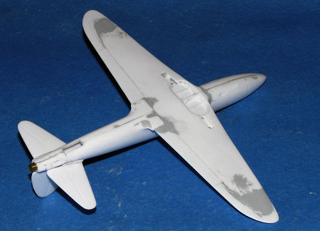 Fitting the wings was a bit of a challenge as well and more trimming and fitting and trimming and sanding was needed to get things in place. Then there was more filler needed for the various joins. This is all quite common with A-Model kits, at least in my experience and from what I've read of the works of others. One does this because one wants an interesting subject on their shelves.