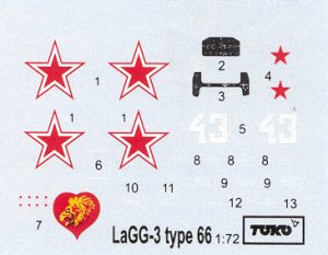 It really is simple, there are only markings for one aircraft. That is of the box art plane of Yu Shchipov when with the 9 ShAP of the Black Sea Fleet air force in the spring of 1944. It is in the later war colors of two greys on the uppper surface and light blue on the underside. Interestingly, Roden shows the tail stripes (which you have to paint) as being white, whereas the same scheme on an older Microscale sheet shows them as yellow. However, I'm more inclined to believe Roden as the information is some 20 years more current! The decals are well printed and matte.