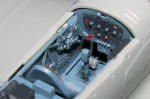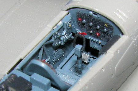 I started to glue on the gun sight after painting it, when the instrument panel slid back towards the nose. After muttering some pleas to the modeling gods, I got a piece of tubing, stuck it through the hole in the nose and pushed the instrument panel back into place. Why these things are solid as a rock until everything is closed up is beyond me.