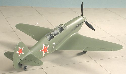 Last bits are to glue the tail wheel strut back on after breaking it yet another time (Sigh!), and the wing pitot tube. No radio mast on Russian trainers. The wheels were then glued in place. These were particularly difficult to paint. No real demarcation between wheel and tire makes it tough. The final bit was the prop and spinner. There is a small 'C' clamp that is to hold the prop on the shaft, however, the plastic is so soft that it broke trying to clip it on. The spinner was glued to the prop and the kit was ready for the gloss coat and decals.