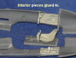 interior. First step was to glue on the rudder bar. The plastic in this kit