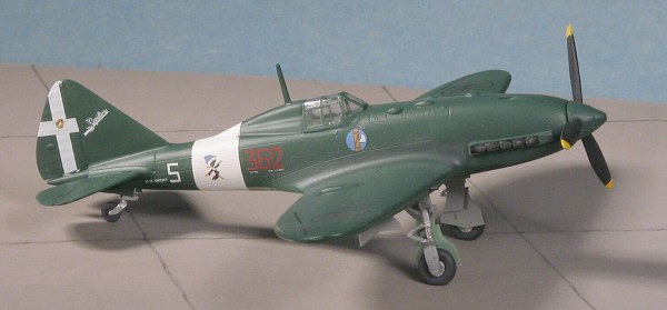 After the doors were on, I glued on the completed prop assembly, cut some plastic rod for the main guns and glued them in. A bit of touch up paint and I was ready for the flat coat. I sprayed on a bit of Tamiya Smoke for the exhaust, but on the dark green background, it is barely visible. Once the flat coat had dried, the masking was removed from the canopy. I added a bit of grey pastels to help make the exhaust more visible, outlined the control surfaces and that was it.