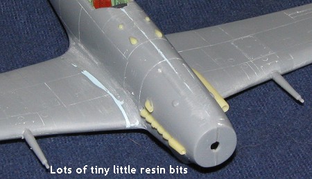 place. Then it was time for the upper wings. The resin wheel well was a bit