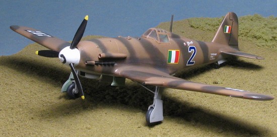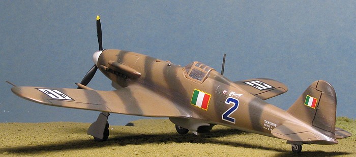During all this, I painted the undercarriage aluminum and the prop hub white as well as the usual Italian Interior Green for the inside of the gear doors. With the kit back to the work bench, the main gear were glued in place and so was the tail gear, after painting the gear wells in Italian Interior Green. I then began applying decals. The kit decals are thin and go on quite well, but there was a real problem with them.