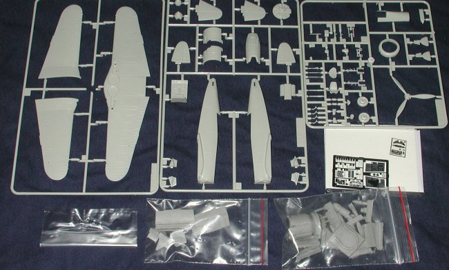 Knowing that more was expected, PCM has added in with the Secter kit an Eduard etched metal fret developed just for this kit. In addition, there are two bags full of resin goodies. Among what is in the bags are basically a new interior (onto which you can use some of those etched bits), a new vertical tail and tail cone, under wing bomb racks and bombs, a new engine cowling and exhaust and a new prop.