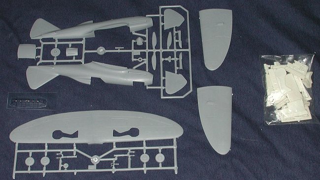 The injected parts are for the general airframe, prop and landing gear. All of the rest is in resin. This includes the interior, exhausts, gear actuating struts, gear doors, main and tail wheel wells, guns and various exterior lumps and bumps.