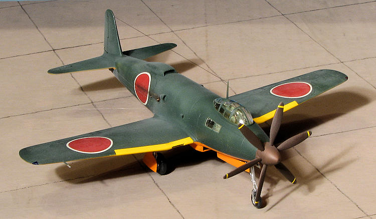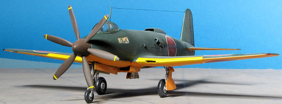 When the Tamiya had been given a day to properly cure, I masked off the orange bits and sprayed the upper surfaces with Nakajima Navy Green from the Colourcoats range. This shade is called out in the Fine Molds instructions, but as Gunze paint is not available in the US, I made the substitution.