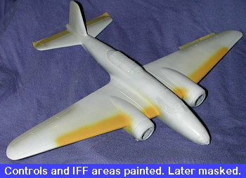 white plane. The next step was to paint on the leading edge yellow. I used