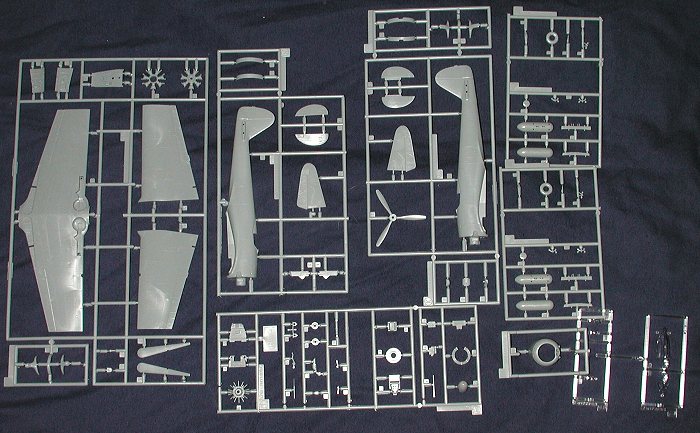 The -I version had a different cowling and a two bladed prop. There was also an oil cooler in the cowling opening. In addition, the -I had longer wings and larger horizontal stabilizers. The exhaust was also different between the two types. All of this has been taken care of with two different sprues, specifically the two center ones in the image above with the fuselage halves on them. While cursory examination showed no difference in the fuselage, I can't see any sense in duplicating the fuselage and I'm sure there are panel differences between the two variants.