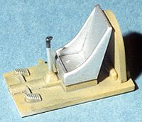 After all this is smoothed out, I went back and added a few other bits to the airframe. This included attaching the tailplanes, the headrest pad, putting the instrument panel decal in place, and attaching the gunsight. The oil cooler radiator was also put in place under the engine. In addition, I installed the drop tank attachment points. This one will not have the tanks installed but have the racks empty. Just to add something for people to talk about! Back into the cockpit I went and painted the upper cockpit area flat black with a leather headrest, as stated in the instructions. When that dried, some of the paint was scraped away for the front and rear of the canopy to be installed. All the clear bits were then masked with Scotch Transparent tape and the sliding center tacked into place with white glue. The radio mast was glued into place and it was then on to the paint shop.