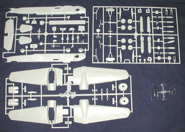 The kit itself has nicely engraved panel lines and is molded in Huma's greenish-grey, slightly soft plastic. It also has nice injected clear bits that are well molded. Sprue attachment points are a bit close to the parts, so for many bits, you'll have to saw off the parts to prevent damage to them. The kit has a bomb bay and two very large 2,000 kg bombs, however, if you want to see them, you'll have to do some work in the bomb bay area as the doors are not designed to be open. A rather odd way of doing things, but one that can be cured with a razor saw and some patience. In terms of options, you really don't have any other than the bomb bay.