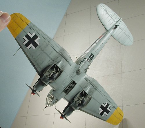 The final thing to do was to add some pastels for the very prominent exhaust staining that the He-111 often showed and then shoved on the props. When that was finished, I was done.