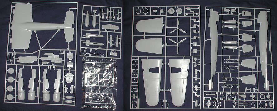As expected, detailing is quite complete, though I am sure that the aftermarket people will soon have all sorts of resin and photoetched stuff for you to spend your money on. There are only two parts of the kit that I can see might cause any problems. One is the engine nacelles. These are split right and left instead of being a single molding. I'm sure this was done for ease of molding. There is a small front cowl ring to help cover up any gaps from construction. The other is the cockpit transparency. This is a very complicated mold. There are two triangle shaped pieces that fit onto the side of the canopy and there is the power turret that fits on the top. Getting all this to mate together is a rather complicated affair according to the instructions. Care will be needed when doing this. The instructions also suggest painting the kit prior to gluing on the clear bits. This might not be such a bad idea with this kit.