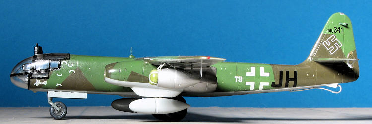Once the box is opened one finds the expected finely detailed and engraved parts and a tiny 'tree' of brass or stainless etched parts. The 234 has these for a couple of antennas and the instrument panel support. There are numerous small plastic parts that need great care removing from the trees. After cleaning the bits, the first thing to be built is a very detailed interior. Since it is almost completely surrounded by clear canopy, you need to be quite careful during its construction. The rest of the kit goes together fairly well, with a little putty required around the wing/fuselage joint and the engine nacelle to wing joint. I chose the recce version so built the cameras to fit into the camera bay and did not use any of the bombs provided. Finding a place to put nose weight is a real challenge, but packing as much as far forward as possible in both the fuselage and engine nacelles will do the trick.