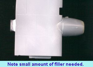Now the instructions would have you install the engines after the wings were in place, but my experience with this type of setup is not that great so I installed the engines on the wings first. Once the holes have been properly enlarged, the engines fit quite well, though I did use some filler.