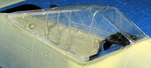 With those fit situations under control, I masked the canopy and glued on the landing gear. The main gear fit quite well into the slots provided. However, the weight of the model itself is enough to cause them to bow a bit. This is even with the additional support of the retraction struts. Just imagine how much they'd deform if made of resin and not injected plastic. Actually, cast metal would probably have worked even better.