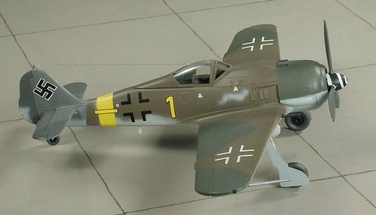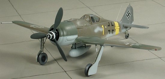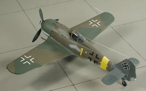 The kit was sprayed with matte clear, then the masking taken from the canopy and windscreen. Next a radio antenna was made from stretched sprue and some final touchup painting was done. That makes one more 1/72 FW-190 to add to the collection!