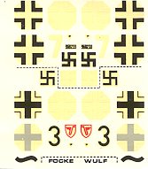 Other than that, the instructions are just like on other early Heller kits in that they are basically a single exploded view for most of the construction with a smaller section for differences. The decal placement chart is small and one really relies on the box art and side profiles for colors. As I mentioned in several paragraphs, the variant differences in the instructions are basically backwards. You get a small (and now yellowed) decal sheet for White 7 from an unknown unit and Black 3 from JG 3 'Udet'. I'd recommend aftermarket. You can tell this is an old kit as it still has the swastikas on the decal sheet.