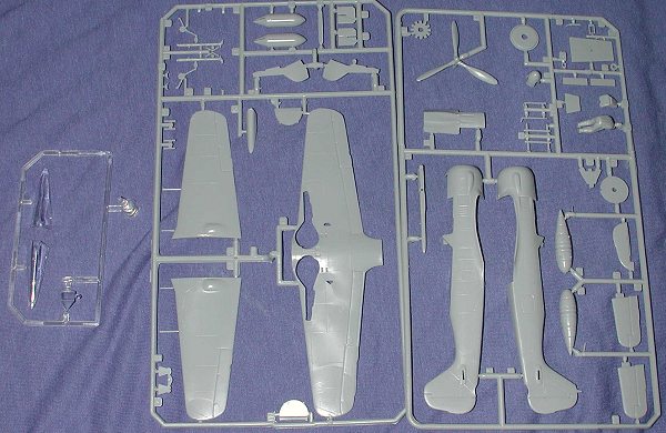 Those of you looking at the sprues may notice that there are no wheels or tail gear. The downside of buying kits at a swap meet. :o( However, there are aftermarket replacements available so it isn't a major disaster. One final thing about the kit, there is some flash that will have to be cleaned up. Not a huge amount, but it is most prevalent in the wheel wells, cockpit area of the fuselage, and the alignment holes in the wings and fuselage. These last parts must be trimmed back or the parts won't mate cleanly.