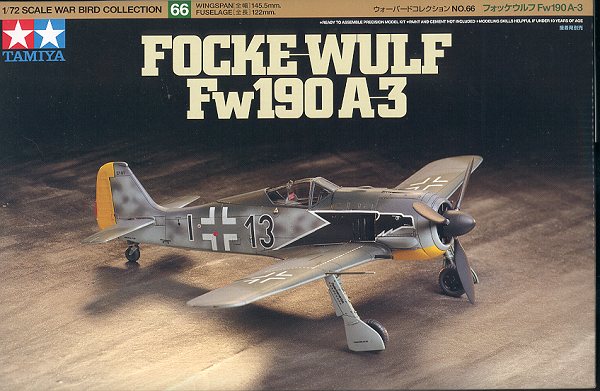 Golly-gee Batman, Tamiya has done it again. Taken a super 1/48 kit and produced a similar entity in 1/72. Though not as trouble free as the Bf-109E-3 that I built, it comes darn close. It is a kit that anyone with a few years under their belt should be able to turn into a beauty. There are those who won't build one because of the price. I can understand that. There are those who don't think Tamiya kits are a challenge. I can understand that as well. However, if you just want to relax with a kit that won't give you any major headaches, or you want to add an FW-190A-3 to your collection, this is the kit for you.