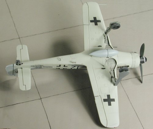 to stop any overspray, and the upper wings were then painted RLM 82,