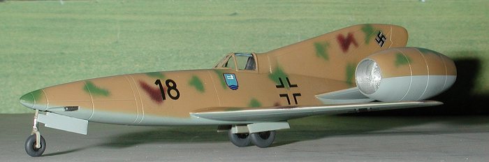 Time to apply some decals. The biggest fun part of these kits is to find something in the way of unit badges to stick on it. There are a number of sources for these things, and if you save all your kit decal bits, you'll have no trouble finding anything appropriate. I used the kit decals for all the national insignia and an Xtradecal sheet for the swastika. The unit badge was gleaned from an old ESCI Ju-52 sheet and the numbers from an equally old Heller He-112 sheet. A bit of Sovaset cured any hesitancy on the decal's part to snuggle into panel lines. A bit of touchup with the paint, a coat of clear semi-matte, the removal of the tape from the canopy and the kit was done!