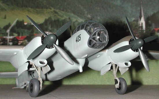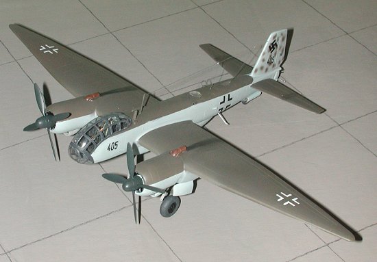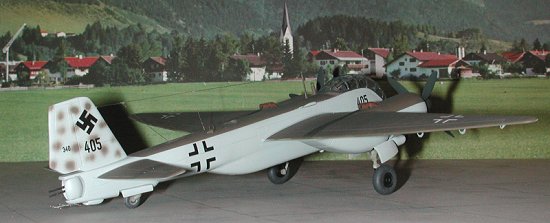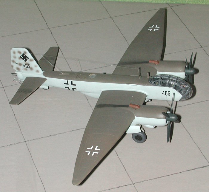 dry, much of the RLM 76 part was masked and the upper surfaces painted RLM 81.