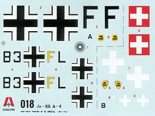 The Ju-88A-4 has been a mainstay of the Italeri line for quite some time. Though I'm not positive of the date of initial release, it can't be much earlier than the early 1980s, judging from the raised panel line/rivet detail. Regardless of the date of release, the molds are still in excellent shape as this kit had no readily apparent flash and no ejector pin marks in an easily seen areas; even the inside of the gear doors are free of them.