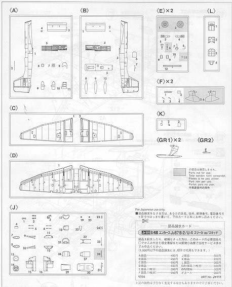 There is basically no difference in this kit and the previous Ju-87B. You have all the bits there to do a standard Stuka should you so wish to do that. However, you'll have to scrounge some other decals as the sheet in the kit is only for this single plane. While on the subject of the decals, they are done by Aeromaster and come complete with an excellent paint and markings placement guide. As with the other B model kits, Hasegawa has provided a paper template to use when doing the splinter camo. I used these on a previous build and found them to be most useful.