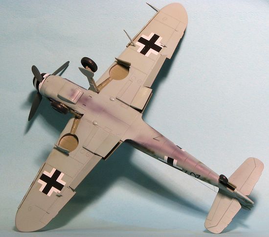 The paint was thinned to nearly water consistency, the air pressure reduced to about 7 psi and the camouflage colors and scheme were painted on. Those who model Luftwaffe aircraft find this to be the most fun part of the build. It doesn't take all that long to do compared to the rest of the build, but at least in my case, is the most enjoyable feature of the process.
