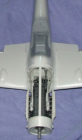 glued in place. I also glued on the drop tank rack. The large indented hole