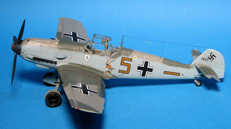 This aircraft is depicting Brown 5, a 109E-3 with 6./JG 26 based in France in January 1940. It is in the then new camouflage scheme of RLM 71/02/65 with a very high demarcation line and no mottling. For this scheme, I am using Aeromaster 48-514 'Attack in the West pt.1'. It has a number of very nice schemes on it and I already used one of them during an earlier build.